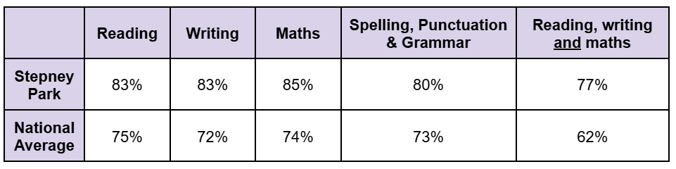 In addition, 5% of children at Stepney Park achieved a higher standard in all three of reading, writing and maths in 2024.